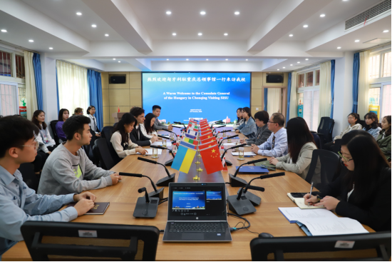 交流会议由重庆非通用语学院刘忠政院长主持。会上,国际合作与交流处张幼斌处长致欢迎辞。她对匈牙利驻重庆总领事馆各位来宾的到访表示热烈欢迎和衷心感谢。她希望双方保持合作,共促匈牙利专业师生的学习深造。