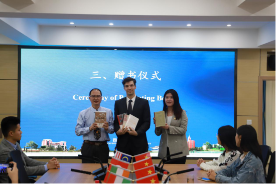 葛凯达先生代表总领事馆向我校赠送匈牙利作者出版的文学书籍,希望同学们通过阅读加深对匈牙利的认识,在匈牙利语学习上有所建树。最后,我校匈牙利语专业学生就匈牙利语学习工具、匈牙利饮食习惯、生活习俗等与葛凯达先生进行了交流。