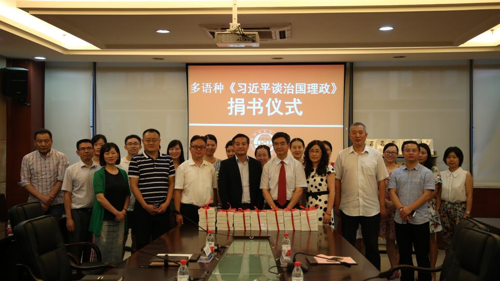 6月30日下午,《习近平谈治国理政》多语种图书捐赠仪式在西区图书馆505会议室举行,北京崇学文化发展有限公司负责人余富文,我校校长李克勇、副校长祝朝伟以及学校各职能部门领导出席了此次捐赠仪式。仪式由祝朝伟主持。