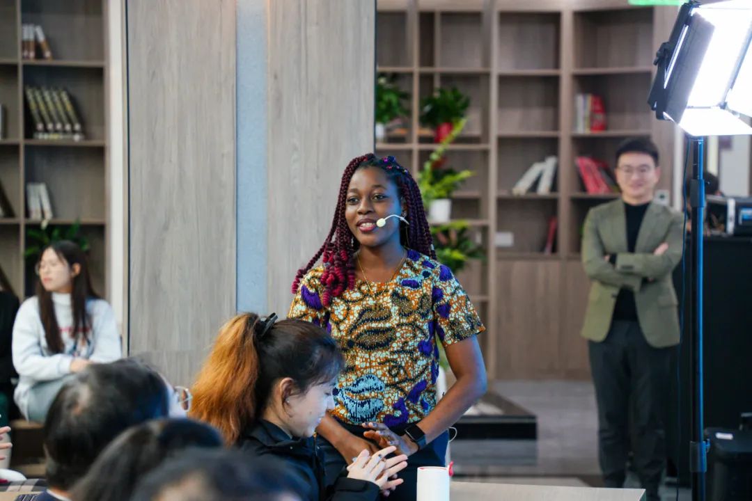 法语学院2023级硕士研究生张光德讲述了自己在非洲的央企从事法语工程翻译的经历,以及对非洲别样的人文风情以及人类文明交流互鉴的感受。曾在洛美孔子学院担任汉语教师志愿者的中国语言文化学院2019级硕士研究生王习习对非洲人民的热情大方感受深刻,她认为,中国在社会发展的同时,也要向非洲学习,注重人和人的关系,保持亲密感,减少孤独感。即将去纳米比亚大学汉语教师志愿者的中国语言文化学院2020级硕士研究生李雯表示,自己希望亲身感受非洲文化,感受非洲的热情。