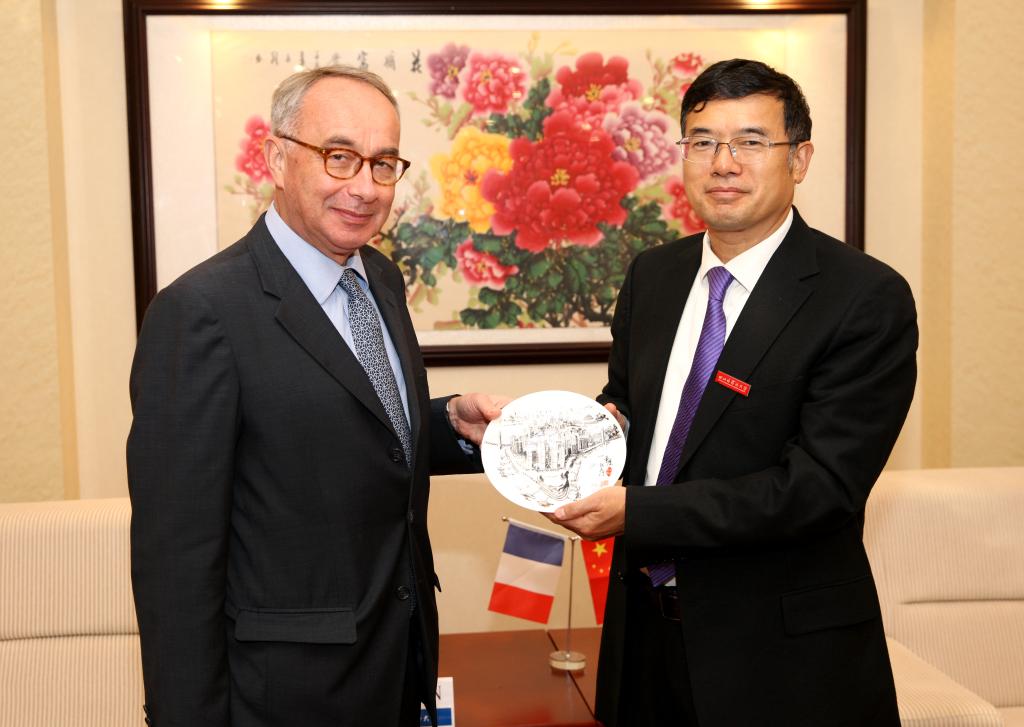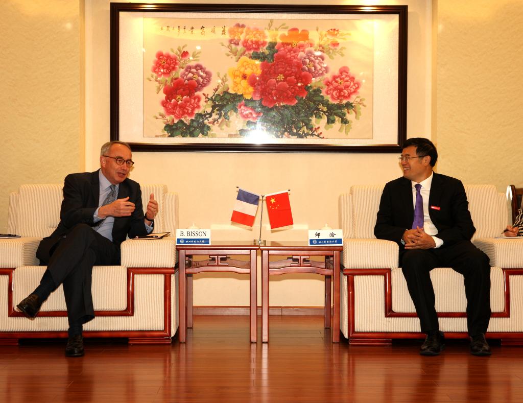 典礼开始前,邹渝书记在宏文楼接待室会见白屿淞总领事。双方回顾了我校与斯特拉斯堡大学的合作历史,并就两校长期开展的交流项目提出推进建议。同时,希望此次中法合作办学项目的开展为两校打开新的合作契机,未来在更多的学科领域开展丰富的合作。