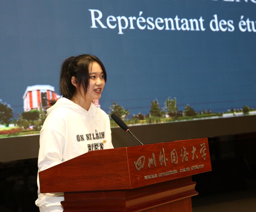 新生代表彭硕同学在发言中讲述了对川外的感情及对专业的理解,表示对未来的学习充满信心,定会更上一层楼。