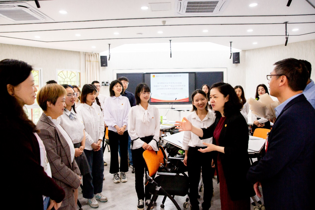 5月20日上午,团市委副书记黄永宜,党委常委、副校长卢波来到培英楼VR仿真实验室,和翻译学院“三进”教改班团支部的同学们一起学习习近平总书记在庆祝中国共产主义青年团成立100周年大会上重要讲话精神,交流学习心得、分享收获体会。