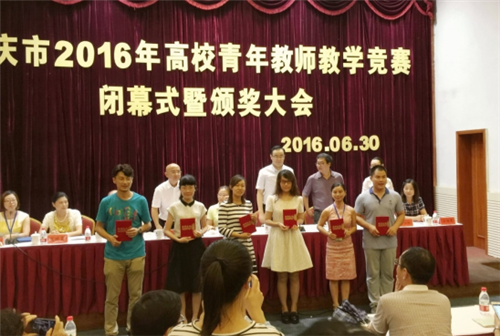 6月28日至30日,由重庆市总工会和重庆市教委主办的2016年高校青年教师教学竞赛在西南大学落下帷幕。本次竞赛以“践行新理念、建功十三五”为主题,参赛院校由上届的16所增加到了27所,进入决赛的选手由44名增加到了70名,基本囊括了重庆市所有高等院校学科教学团队的青年教学精英,竞争十分激烈。竞赛设人文社会科学、自然科学基础学科、自然科学应用学科三个组别,成绩评定由教学设计、课堂教学两部分组成,充分体现了“上好一门课”的竞赛理念。