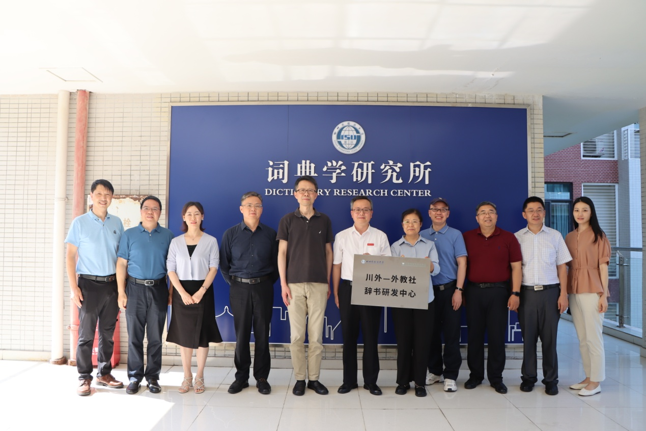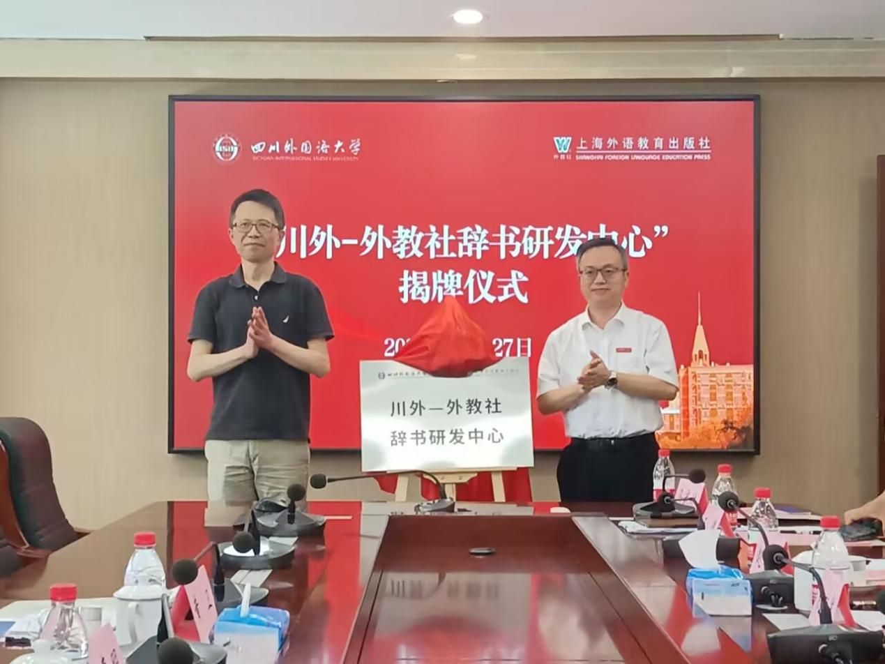 随后,黄卫副社长与祝朝伟副校长共同为“川外-外教社辞书研发中心”揭牌。
