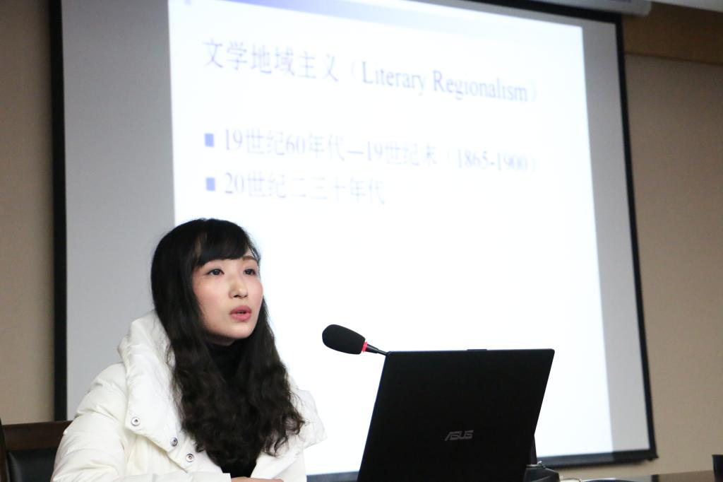 张健然博士作了题为“论文学地域主义的审美现代性”的报告。她对文学地域主义进行了定义,论述了文学地域主义的现代转型与“公共领域”之间的关系,并深入讨论了文学地域主义对启蒙现代性的批判和救赎。整场报告材料丰富,思路清晰,结论令人信服。
