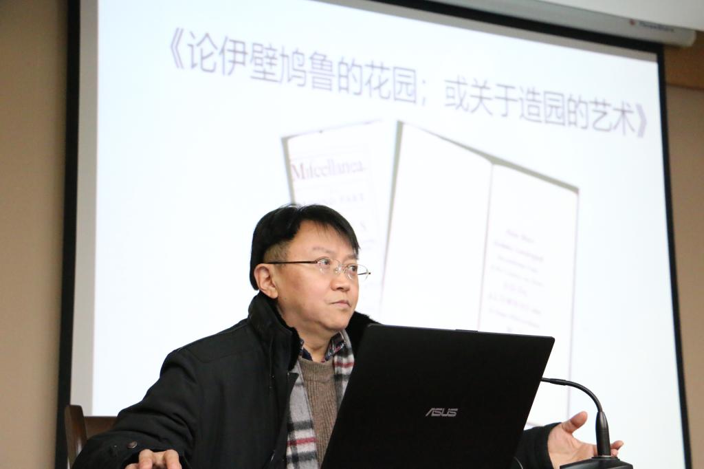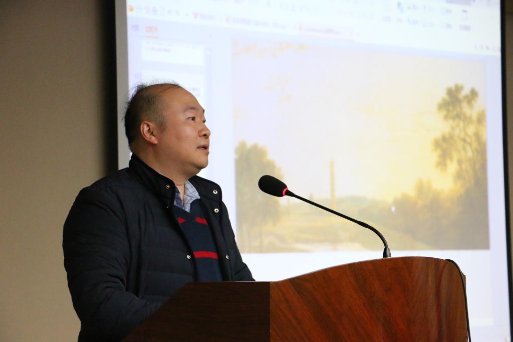 会议第二阶段是科研报告阶段。首先,张旭春作了题为“SHARAWADGI词源考”的报告。他从梳理“SHARAWADGI”词源的文献出发,提出了自己的独到见解,并且上升到“Sharawadgi”美学观念的传播与18世纪欧洲新古典主义的衰落以及浪漫主义的兴起之间关系的宏大课题,最后提出自己的治学理路:材料的厚度、思想的深度和生命的温度。整个报告考证细致深入,论证透彻,立意深远,众人无不叹服。王仁强引用王国维的学问三境界,对报告做了点评,并向老师们介绍了当前外国语言文学学科建设的成绩和规划,期望英语学院为学科建设做出更大贡献。