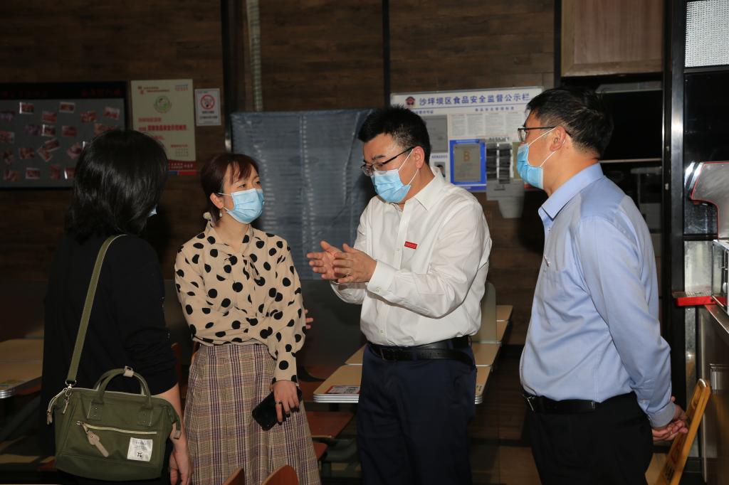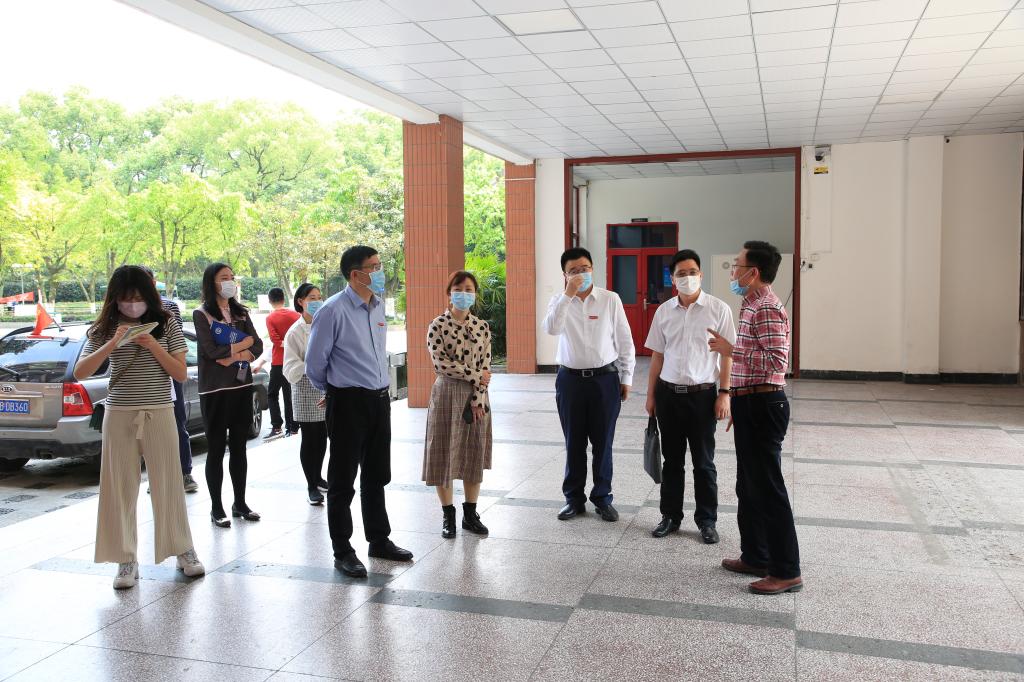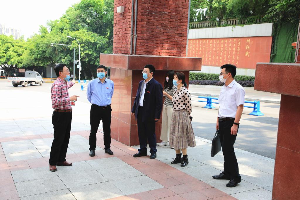 4月29日下午,市教委高等教育处副处长吴岚、干事刘康莅临我校督查疫情防控和开学准备工作。学校党委书记邹渝、校长董洪川、副校长李彦带领相关部门负责人迎接检查。