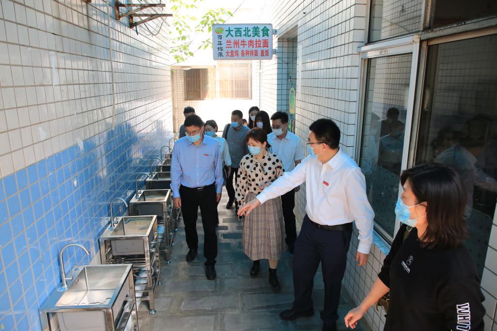 吴岚、刘康检查1号校门管理情况,学校领导围绕校门口通道设置、温馨提示、流程图、应急处置等方面作了详细介绍。在培英楼,吴岚、刘康查看教学楼洗手液、消毒液的摆放和临时观察室建设的情况。随后来到东区隔离点和食堂,查看隔离点的防疫工作和食堂消毒、洗手、就餐等相关情况。最后来到西区学生宿舍,检查宿舍消毒、通风等相关情况。