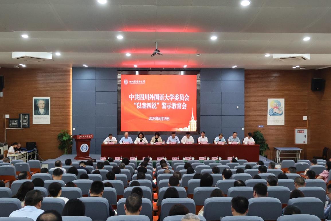 6月19日,学校在歌乐楼A栋3楼报告厅召开党纪学习教育“以案四说”警示教育会,深入学习领会习近平总书记关于全面加强党的纪律建设的重要论述,深刻剖析违纪违法典型案例,持续深化以案说德、以案说纪、以案说法、以案说责,让党员干部受警醒、明底线、知敬畏,扎实深入开展党纪学习教育。