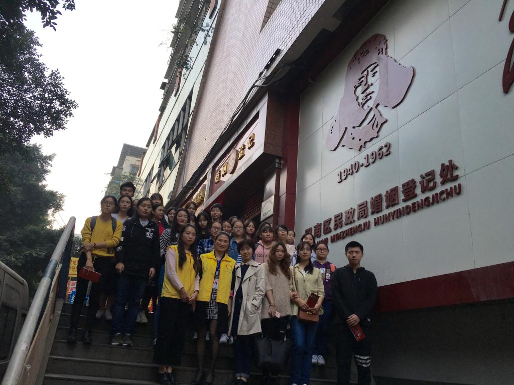 11月8日下午,我系社会工作专业教研室杨思圆老师带领2017级社会工作、社会学专业共28名学生前往位于巴南区婚姻登记管理中心的民悦社工婚姻家庭服务站开展了实践周参访交流学习活动。重庆市民悦社会工作服务中心(简称“民悦社工”)是我系拟建的近40个实践教学基地之一,巴南区婚姻登记管理中心民悦社工婚姻家庭服务站是民悦社工自2016年9月携手巴南区民政局婚姻登记处共同搭建的婚姻家庭社会工作专业服务平台。本次实践周参访学习活动,将带领2017级新生与一线社会工作者开展观摩、体验、学习,促进学生更加全面地了解社会工作行业与专业服务内容,并通过学习交流加强与行业的联系与互动。