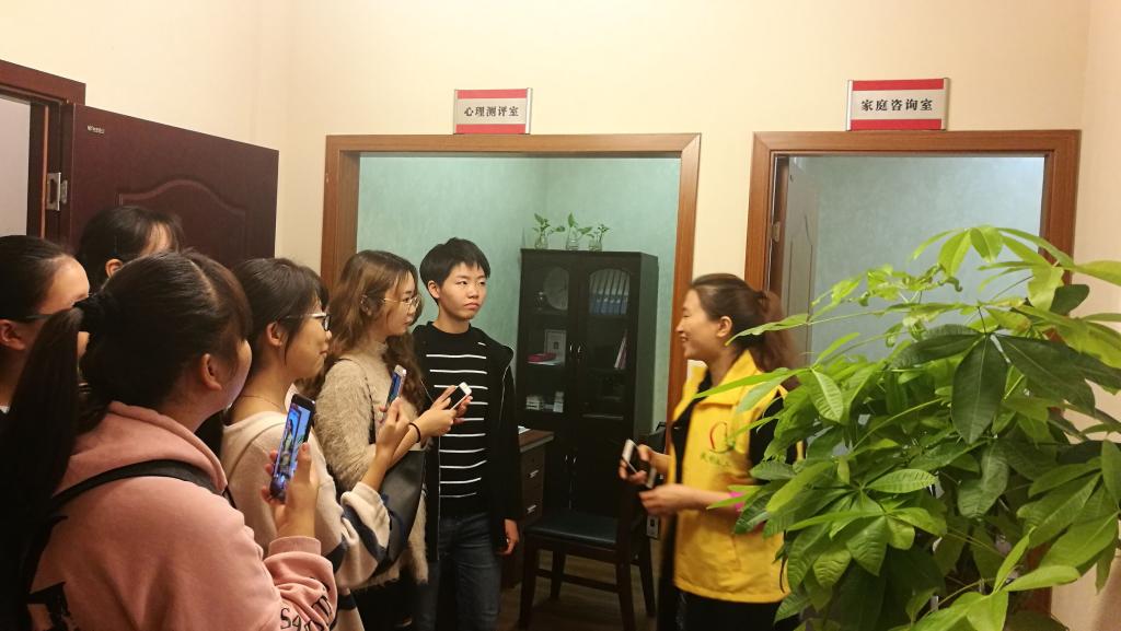 民悦社工婚姻家庭服务站站长余鄂、项目主管邓洁热情地接待了师生一行。社工余鄂带领同学们参观了婚姻登记中心及社工服务站办公环境,向同学们介绍到了社工服务站在婚姻登记中心的重要作用,社工服务站通过联合婚姻登记机关、社区与社会组织,充分发挥婚姻家庭社会工作服务在解困、引导、疏导和发展的五大功能,通过专业的服务,为婚姻当事人提供情绪疏导、情感支持等服务。到目前为止,该平台已成功协助多户家庭走出阴影,走向幸福生活。