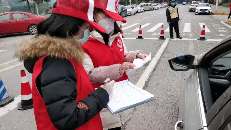 即言即行,王镜很快便加入了渝北区防疫青年突击队。工作第一天,她被分配到了位于319国道与长寿区交界处洛碛镇砖房村检查站,这里是疫情防控的重要关卡之一。为严格控制疫情传播,王镜积极协助医护人员测量体温,排查过往车辆是否承载发热人员。“请把车窗打开,我们需要为您测量体温....”类似这样的对话仅一上午就重复了上百次。一同坚守在岗位的还有应急救援队,交通执法队与协警队的防控人员,他们都是身强体壮的男同志,坚守岗位是他们的职责所在,面对这个自愿请战勇敢抗疫的23岁小姑娘,他们即欣赏又自豪,砖房村检测点就是他们共同修筑的战壕,他们是共进退的战友!