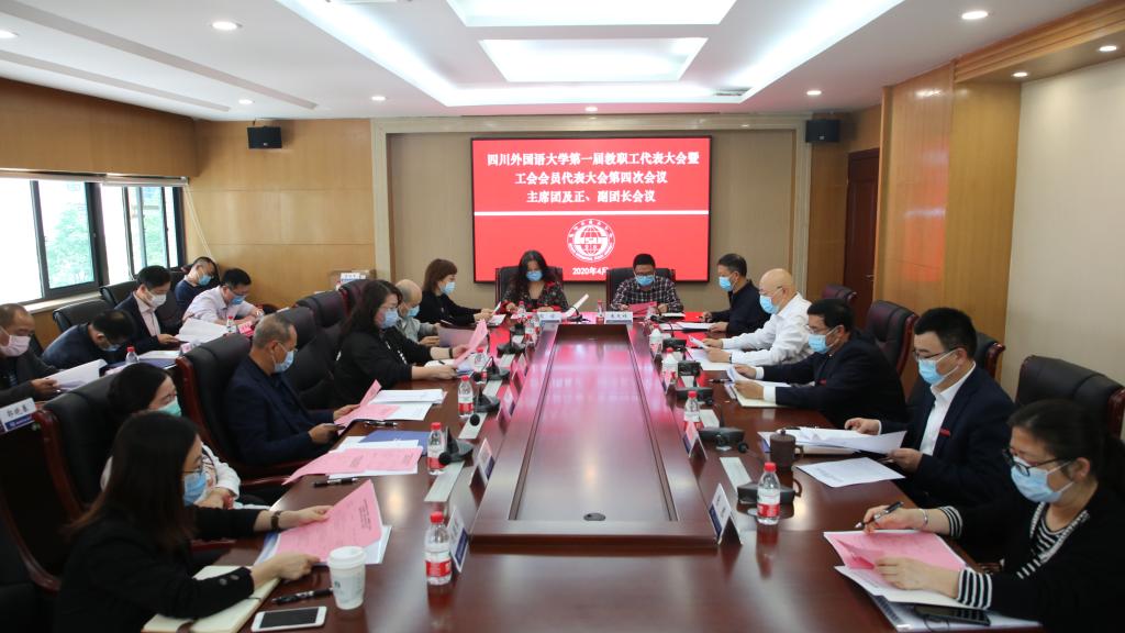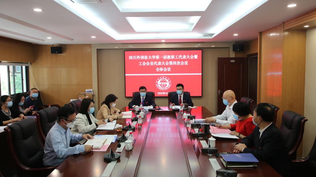 4月17日,四川外国语大学第一届教职工代表大会暨工会会员代表大会第四次会议召开。党委书记邹渝同志主持会议并讲话。会议审议了学校工作报告、教代会和工会工作报告、学校财务工作报告、学校学术委员会工作报告,传达学习了学校党委一届四次全会精神。会议设主会场,各代表团通过视频会议参会并进行讨论审议。