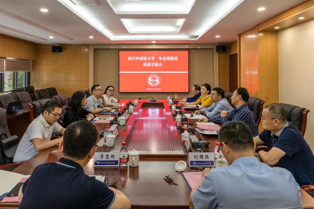 邹渝从办学定位、人才培养、学科建设、国际合作与交流、服务地方经济发展几方面介绍了学校的基本情况。邹渝表示,学校高度重视与华龙网集团的合作,对华龙网一直以来对川外发展的关心与支持表示衷心感谢。他表示,以川外70周年校庆宣传合作为契机,相信能在人才培养,学生实践和学校平台的打造,服务重庆内陆开放高地建设等方面与华龙网进行深度合作。