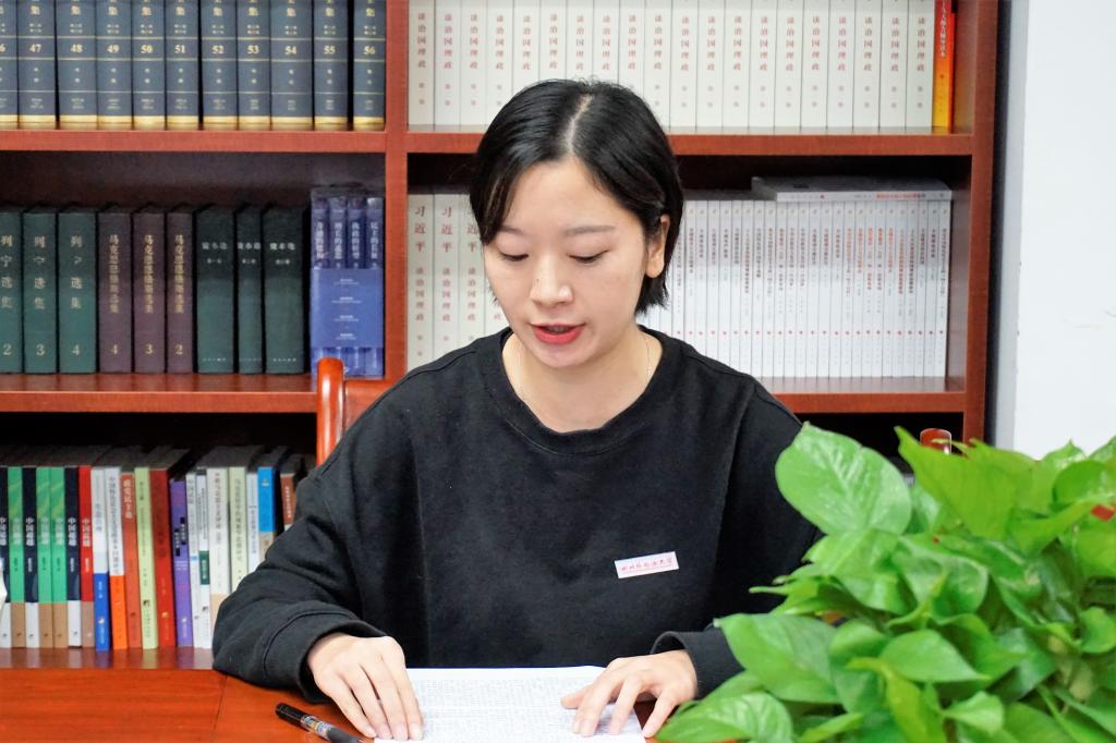 来自马克思主义学院的李国娇代表第二小组分享,认为新时代高校学生干部的责任使命就是首先自己要做合格社会主义建设者和可靠接班人,同时还要影响和带动更多更青年一起成长一起进步,一起在“党旗所指,团旗所向”的引领下切实做好服务大局的工作。作为学生干部,我们要以提升自我素养为前提,以增强服务意识为核心,以追求伟大复兴为目标,自觉承担自我教育、衔接师生、建设祖国责任,在不懈奋斗中磨练本领,砥砺青春。