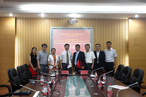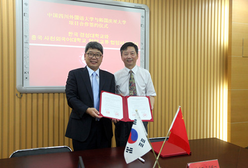 会谈中,乐勇副校长向来宾介绍了我校概况和教育国际化发展现状。庆星大学宋守健校长对川外的悠久历史和发展现状表示赞赏,并简要介绍了庆星大学的办学历史与特色。随后,双方签署框架性合作协议,并期待全面开展合作。
