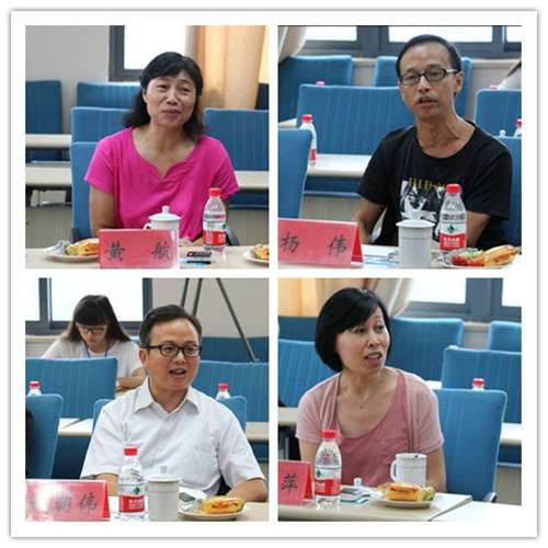 刚获得“重庆市名师”荣誉称号的翻译学院院长祝朝伟教授率先发言。祝教授表达了自己对于学校的感激之情。他提出要关注教学改革,有意识地将科研转化到课堂,着重强调将教书与育人相结合。校工会主席吴名江老师在发言中指出,教师作为一个群体要不断努力学习、工作,回馈社会。他回顾了过去一年的工作,对学校领导和同事的帮助和支持表示感谢。随后,各院系教师相继发言。他们结合各自工作岗位提出了学校在发展过程中存在的问题,并就学校在学术研究建设、学生人格培养、国际交流、青年教师培养机制等方面提出了切实可行的建议,现场讨论气氛热烈。