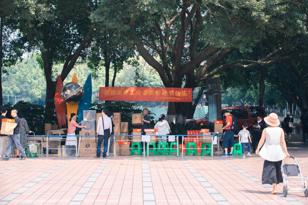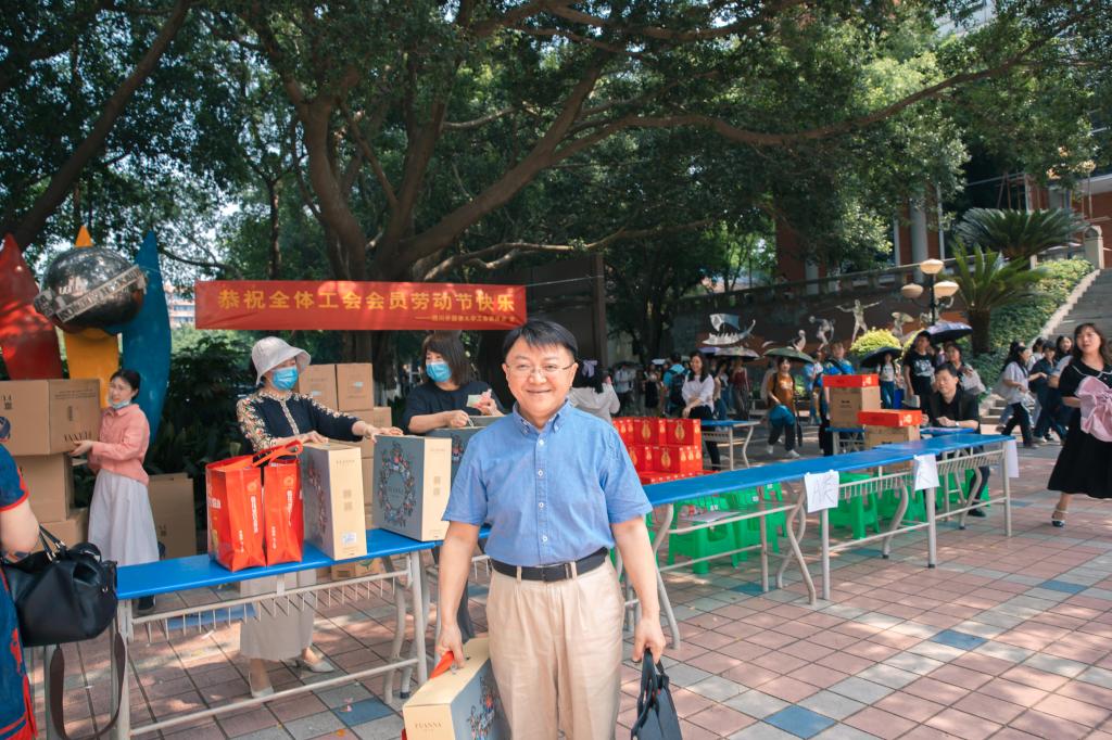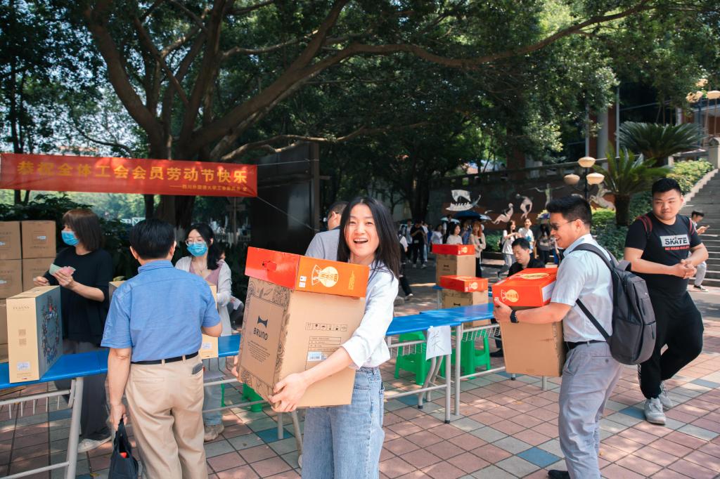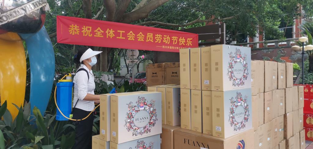 在疫情特殊时期,为确保校园安全,校工会对每一批到校货品进行消杀,每一个阶段流程制定方案,严格执行。耀眼的天空下,定格的不只有树阴下劳动的人群,还有领到慰问品后教职工们喜笑颜开的画面。