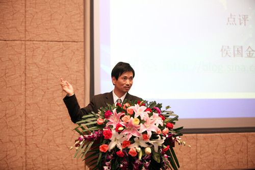 在颁奖典礼进行中侯国金教授做出了精彩的点评。他用英文从“是什么”、“怎么样”、“为什么”的角度深刻剖析了本次大赛的译文,并肯定了获奖选手们的翻译成果,同时,提出了参赛作品中的不足,为译者提出了中肯的建议。