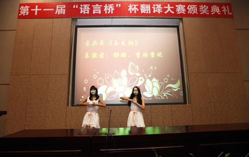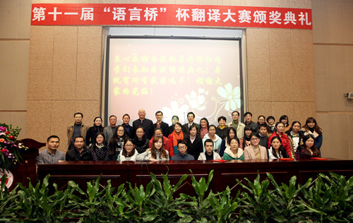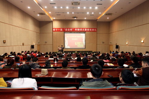 近日,我校在宏文楼国际报告厅举行了第十一届“语言桥”杯全国翻译大赛颁奖典礼。本次典礼由四川外国语大学主办,语言桥集团承办。四川外国语大学副校长李小川、语言桥集团董事长朱宪超、语言桥集团培训总监王永华、语言桥集团重庆公司项目经理张家庆莅临此次典礼。重庆邮电大学外语学院国际学院副院长汪顺玉教授,四川外国语大学侯国金教授、陶丽霞教授,四川外国语大学研究生院副院长胡安江教授、高伟副教授等担任了本次大赛评委。