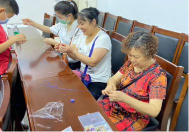 团队成员带领阳光社区的儿童们开展了非遗游戏,然后从观看缠花成品视频、讲解缠花历史起源、亲子体验创作和作品展示四个环节为社区居民们宣讲了非遗缠花知识。他们相信“实践是最好的传承”,通过引导孩子们了解、制作缠花,不仅能提高孩子们的动手能力、丰富课余生活,还能提高他们对中国传统文化的兴趣、增强对非遗文化的保护意识、激发民族自豪感。阳光社区里的许多中老年人们也对学习制作缠花表现出了极大的兴趣。