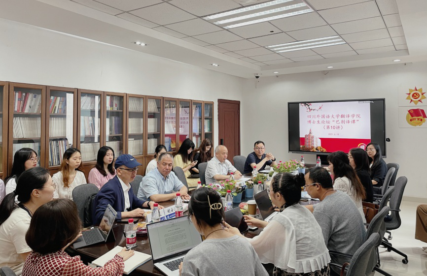 2021年6月18日下午14:00,四川外国语大学翻译学院成立十周年系列活动——博士生论坛“巴别译谭”第10讲在立德楼B407会议室举行,本次活动由翻译学院院长胡安江教授主持。