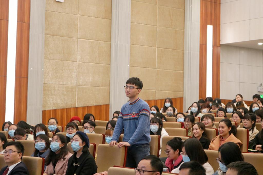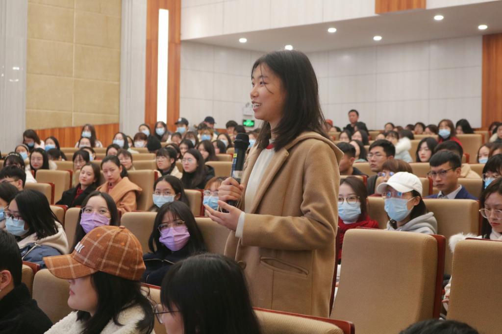杨武能教授在答疑环节中指出,外语学习离不开实践,我们要努力把理论知识转化为自身技能。他希望川外师生能够有理想有抱负,立大志成大气候,不仅有吃苦耐劳的精神,还能忍受学术研究的挫折,抓得住机遇。