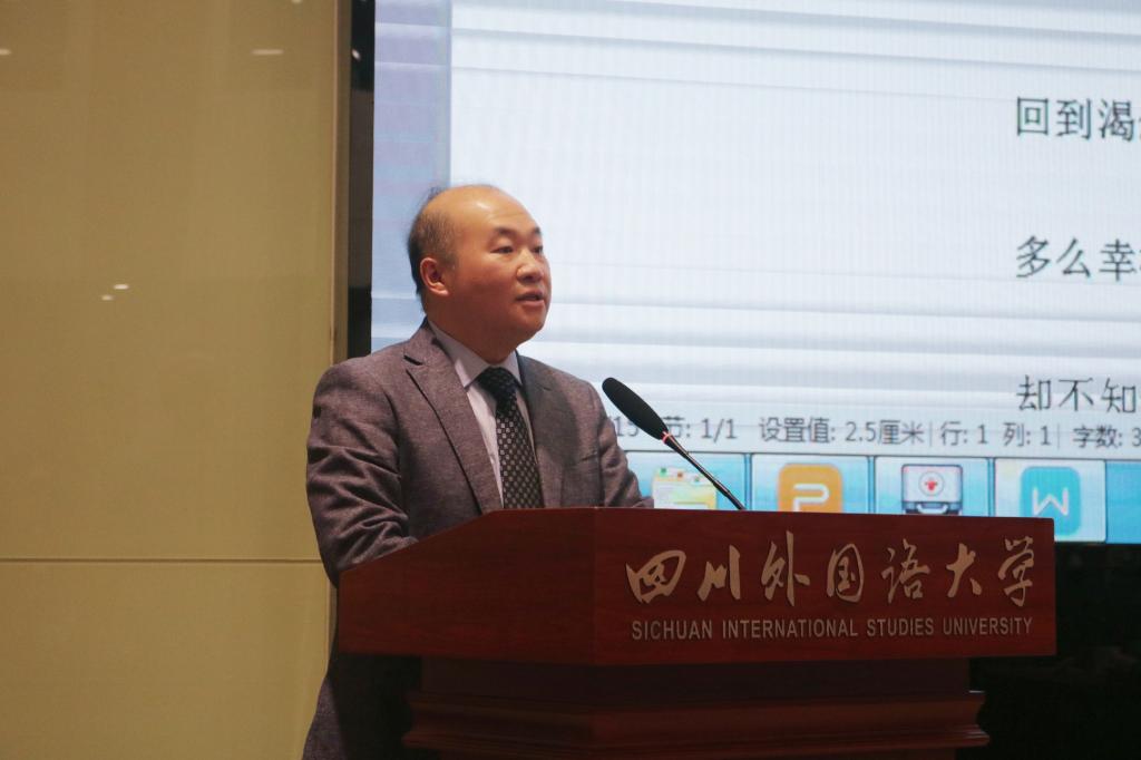 12月8日上午,我国著名翻译家、四川外语学院原副院长、杰出校友杨武能教授应邀为我校师生作题为“精神家园——成名成家之路”的主题讲座。学校校长董洪川、副校长王仁强,翻译学院院长胡安江、教授傅晓微,德语系党总支书记廖峻,研究生院副院长赵永峰,学科办副主任陈明志,党政办副主任、校友办主任常慧明出席活动。讲座由王仁强主持。