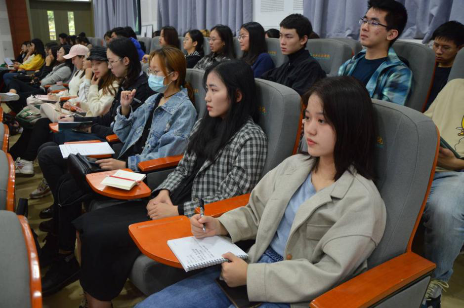 之后,常慧明主任介绍到了学校的校徽、校歌。他表示,“海纳百川、学贯中外”的校训强调了川外师生要有兼收并蓄,面向世界的内涵,川外学子需要具有国际眼光的开阔视野、创造创新的学习能力。同学们在老师讲解之时,认真地聆听摘抄,记录校史的相关信息。