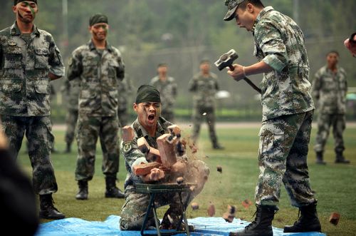 随后,精彩纷呈的表演项目开始上演。中国人民解放军77133部队侦察队的战士们表演的匕首操、倒勾、夹颈摔和硬气功等让在场观众叹为观止,博得了全场的喝彩和掌声。女生的军体拳以柔克刚,尽显巾帼不让须眉之势;男生的擒敌拳也毫不示弱,力显男儿血气方刚之勇。最后的学生队列操方队的表演同样激动人心,他们在铿锵有力的歌声中迈着整齐的步伐,在操场上穿梭,犹如魔法变换一般先后走出了“sisu 2013”、“五角星 八一 77133”和“v”的字样和形状,令人尤为印象深刻。