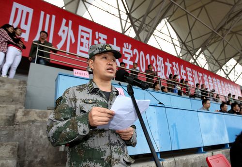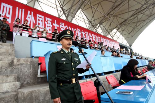 9月27日上午10点,四川外国语大学2013级本科学生军训汇报表演暨总结表彰大会在西区运动场隆重举行。校党委书记马新发,校长李克勇,党委副书记雷莹,副校长李小川,中国人民解放军77133部队副政委孙志章和学校大学生军训团政委苏雪以及部分职能部门负责人、各学院(系、部)党政领导、辅导员参加此次大会。大会由学生处副处长古晶主持。