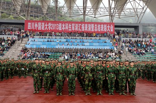 至此,四川外国语大学2013级本科学生军训汇报表演暨总结表彰大会在悠扬的校歌声中圆满地落下了帷幕。