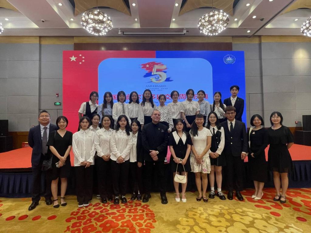 2023年9月6日,中国与萨尔瓦多建交五周年庆典在重庆市渝中区解放碑帝晶酒店宴会厅举行。萨尔瓦多驻华大使阿尔多·阿尔瓦雷斯、中国政府拉美事务特别代表邱小琪、重庆市副市长张国智出席庆典并致辞。四川外国语大学西方语言文化学院西班牙语专业师生代表受邀参加本次庆典。
