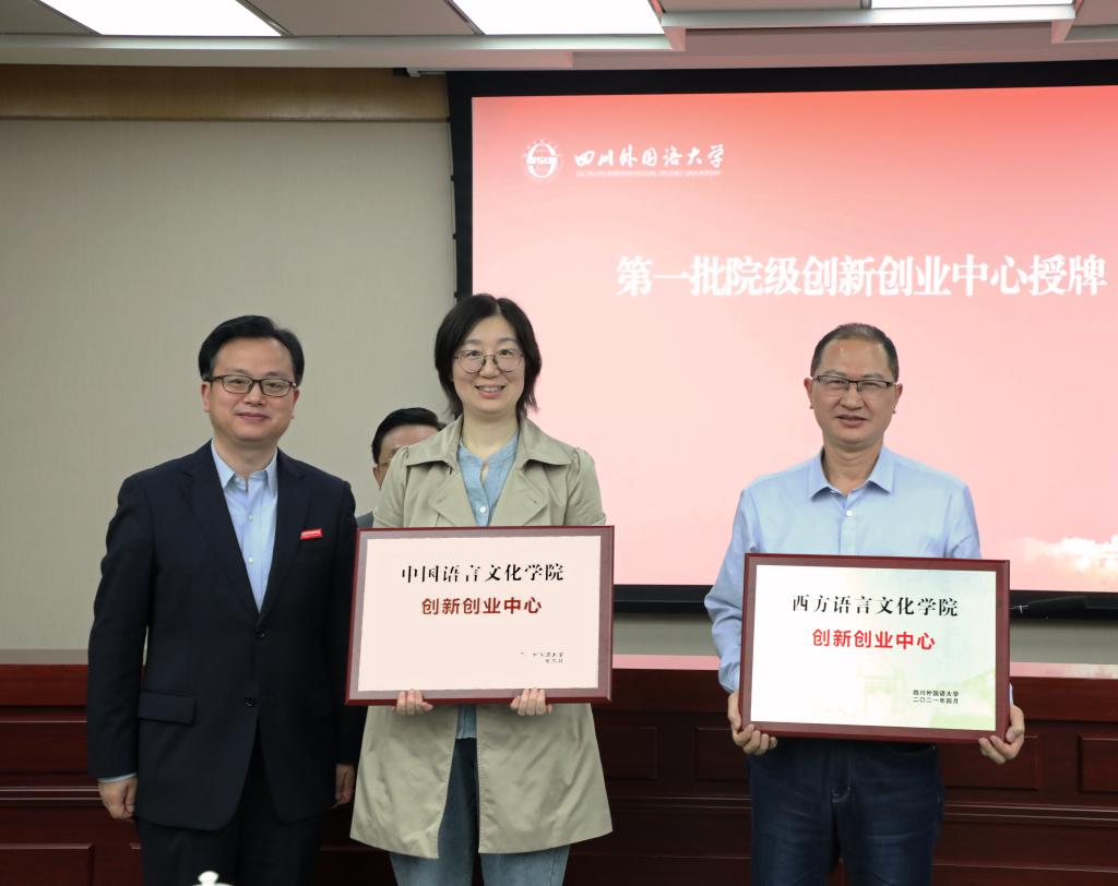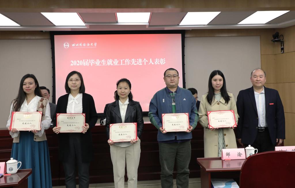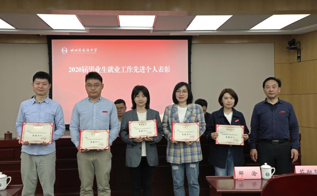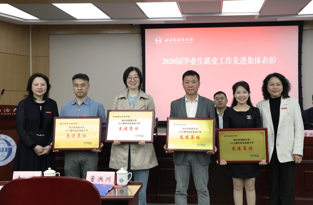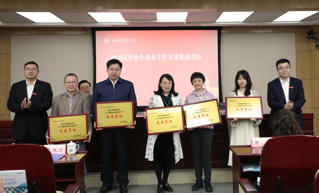 党委副书记苟朝莉宣读《四川外国语大学关于表彰2020届毕业生就业工作先进集体和先进个人的决定》,与会校领导为获奖单位和个人颁奖。副校长祝朝伟宣读《四川外国语大学关于建设第一批院级创新创业中心的通知》并授牌。