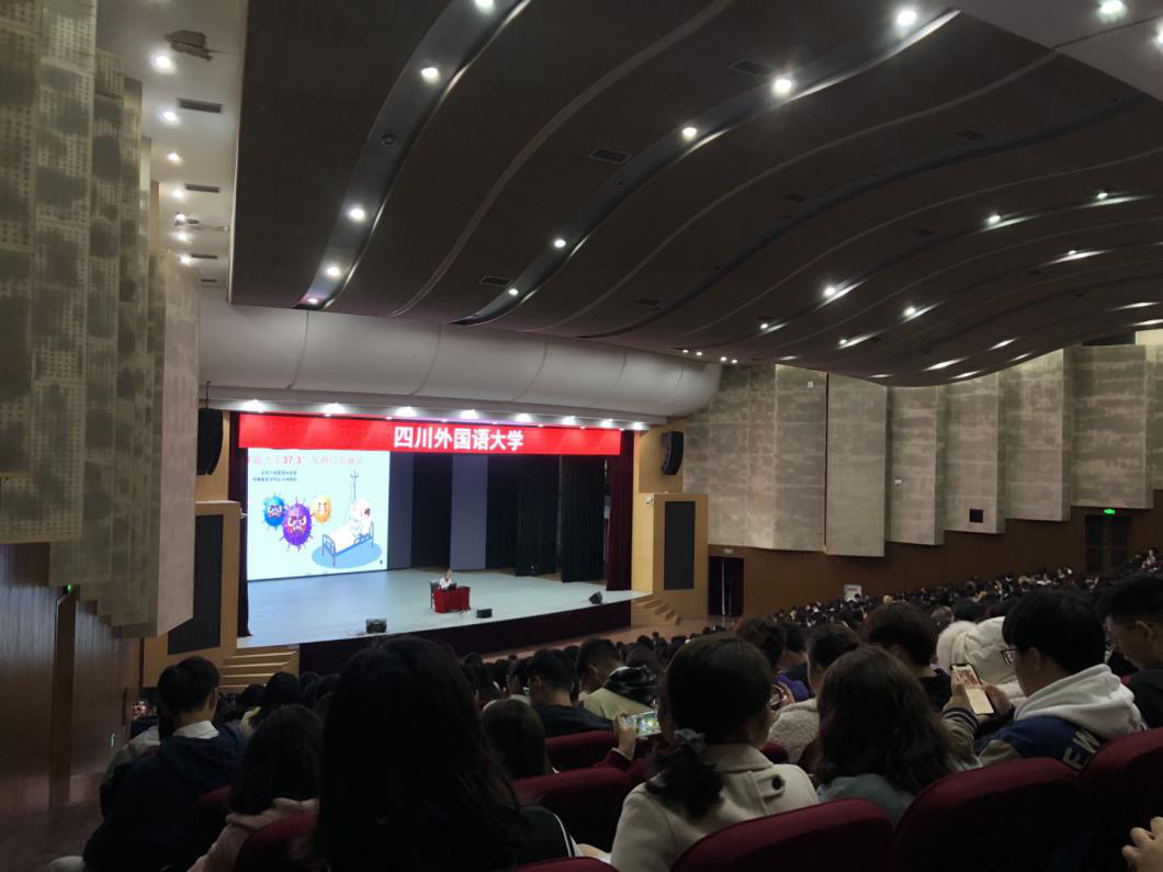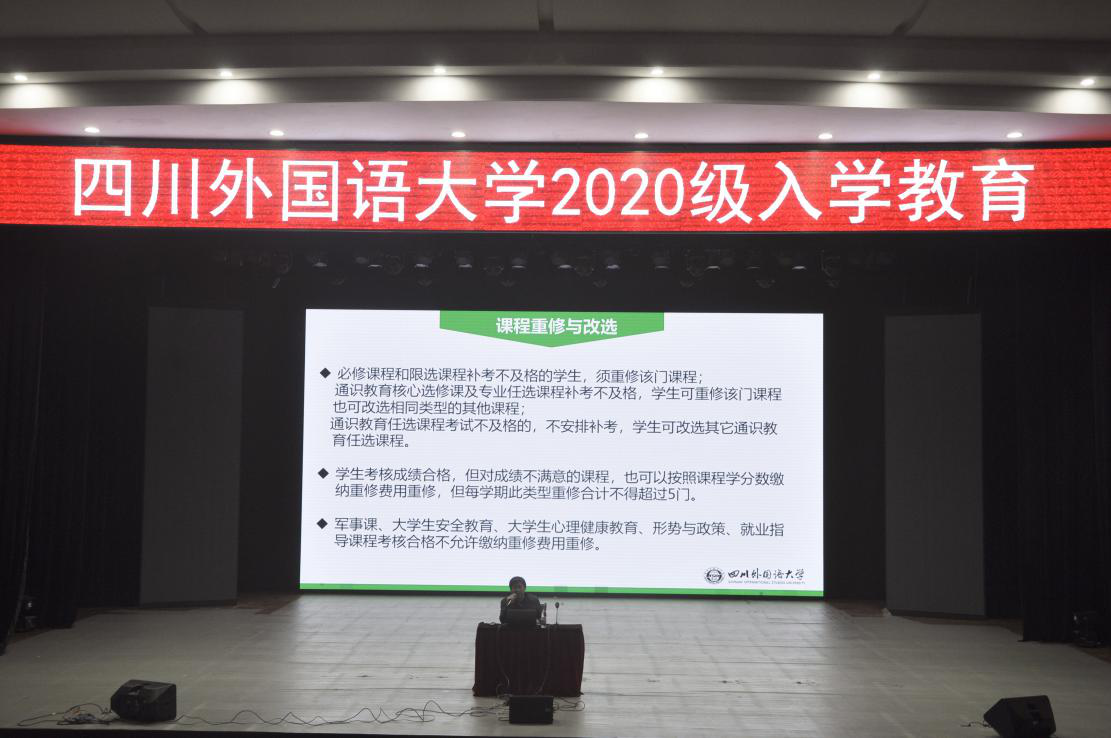2020年11月3日,我校2020级新生入学教育系列讲座第二讲在东区大礼堂顺利举行。校医院副院长刘新和教务处教务科科长吴必鹏分别向同学们详细讲解健康生活知识和学籍管理规定两个方面的内容。2020级全体本科新生分3场参加本次讲座。