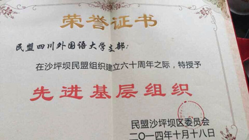 大会表彰了先进集体和个人并颁奖。我校民盟支部获得先进基层支部称号,是受表彰的两所高校支部之一。殷明清、周婷获得先进个人称号。这一表彰是对我校民盟支部的工作和我校50余名民盟成员的高度肯定。一直以来,我校民盟支部大力加强自身思想建设、组织建设,支部凝聚力战斗力不断增强。同时,支部充分发挥成员优势,紧紧围绕学校教育教学、管理服务工作广泛开展调研、积极建言献策,在各领域积极助推学校改革发展。