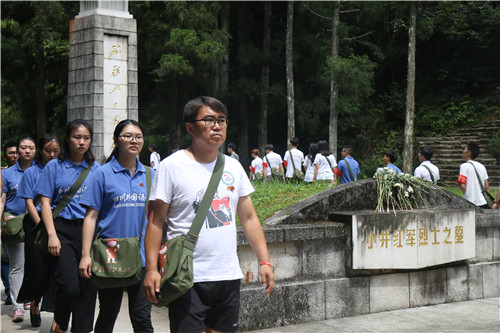 而在小井红军医院被烧毁的旧址以及小井红军烈士墓前面,老师也饱含深情地讲述了一个又一个令人动容的故事——“师长献盐”讲述的是师长张子清不顾个人安危,将分发给他用于伤口消毒的一点食盐节省下来,献给了伤势更严重的战友,战友得救了,师长却因伤口感染牺牲了。这样的故事在整个红军革命斗争中只是一件小事,却因为师长和战友之间的情谊而让人感动,更因为在这样艰苦的环境之下,对于理想信念的坚定,对革命事业的最终胜利的追求,让人铭记于心中。