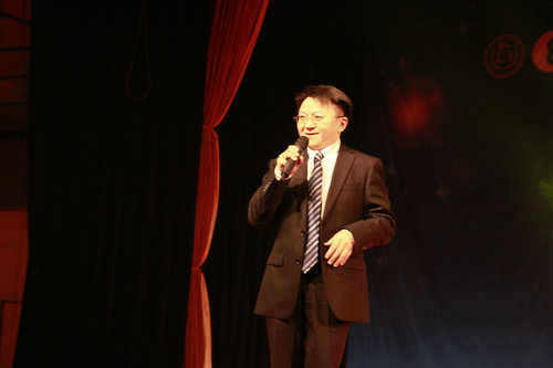 伴随着独特的“卓别林”独舞,帷幕徐徐拉开。大气磅礴的开场视频结束之后,开场舞“sparkling diamonds”将全场气氛瞬间点燃。在同学们的欢呼声中,英语学院院长张旭春教授致词,幽默的谈吐和精彩的英语演讲获得了观众们的阵阵掌声。张院长祝福英语学院的所有师生在即将来临的马年里,像天马一样飞腾,越飞越高,越飞越远。