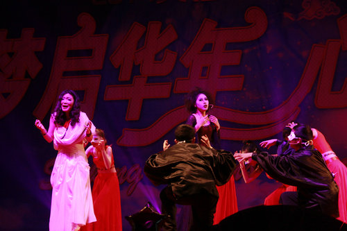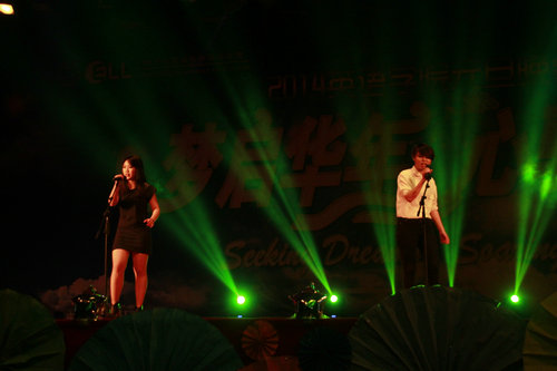 晚会的第一章在《汉唐舞云纹》的曼妙舞姿中启幕。明艳的色彩,婉约的气质,似真似幻。乐器合奏《瑶族舞曲》让我们沉醉其中。古筝的轻灵,琵琶的灵动,葫芦丝的悠扬,交织成一曲灵蕴深远的乐章。古典演绎风韵,欢乐唱响青春,合唱《大米狂想曲》,巧妙的将各种音乐交织为一曲,曲词变化自如,风格活泼欢快。接下来的街舞秀《vampire》,舞姿帅气性感,引得现场尖叫连连。而杨欢学长的一曲《天黑黑》,舒缓优美,饱含深情,如清泉般流入心田。观众喝彩不断,献花者蜂拥而上,气氛高涨。