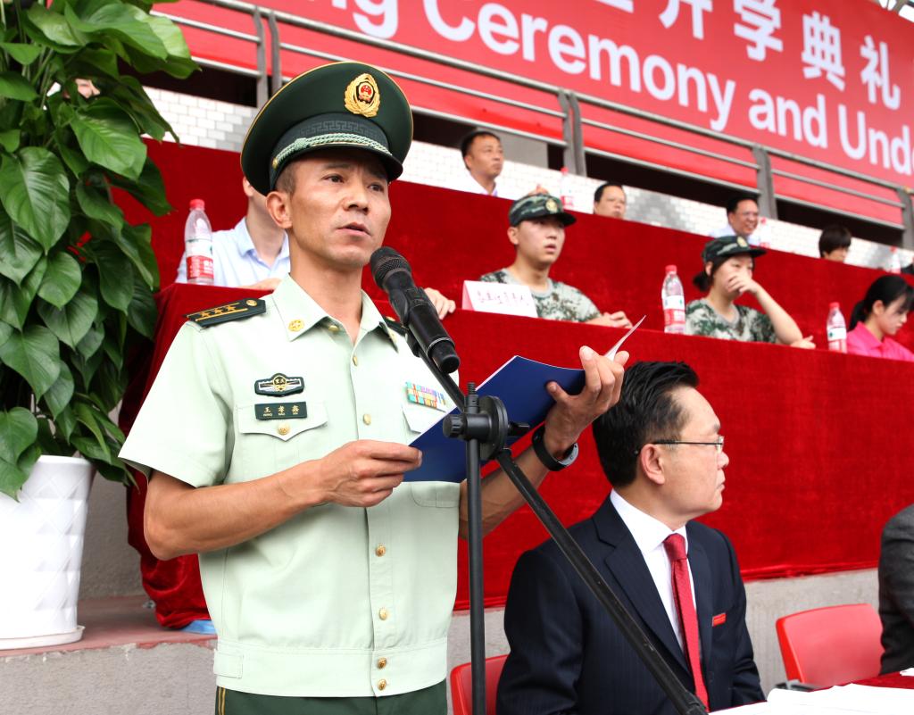 承训部队领导在讲话中指出,举行大学生军训可以磨砺意志,锻造精神,打牢作风基础。他希望同学们在此次军训中敢于挑战自我,学有所感,学有所悟,学有所成,学有所获。