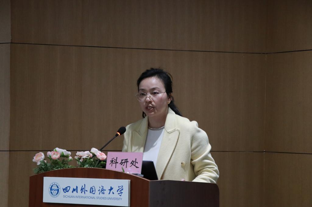 科研处项目科科长罗惜详细介绍了科研项目申报与管理规定,她从以学校项目类别为例,从纵向项目、横向项目、校级项目几个方面介绍了各级各类的科研项目特点、关系以及申报注意事项,同介绍了学校科研奖励及配套、科研经费预算及使用等情况。
