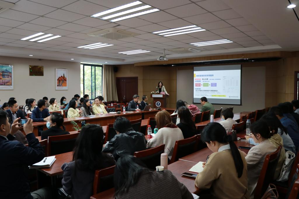 教务处副处长余晓梅围绕“教学至上,以人为本”基本原则,分别从教学管理和教学研究两方面展开系统介绍,详细说明了教务管理系统及其常用服务、教改项目立项范围及申报要求,并以2022年立项项目为例进行深入浅出的讲解。