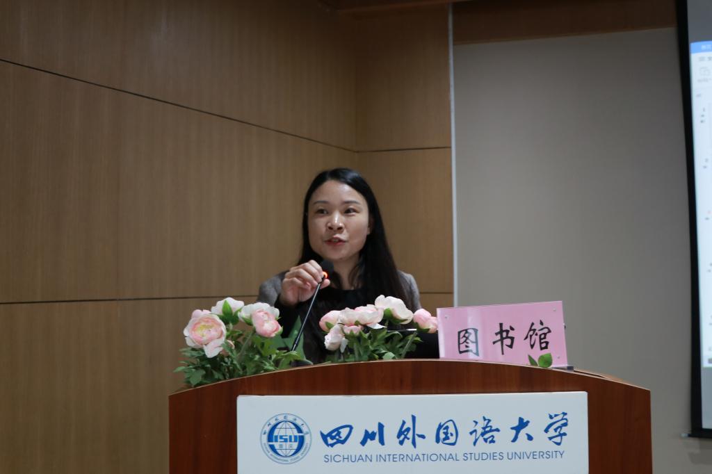 图书馆馆长助理邓李君以“图书馆里有什么、图书馆要怎么使用、图书馆能提供什么、图书馆能为你做什么”四个关键性问题为切入点,分别介绍了入馆流程、资源检索与借阅方法等相关内容,同时推荐了图书馆的全文获取、一小时讲座、查收查引、系列阅读推广活动等服务机制。