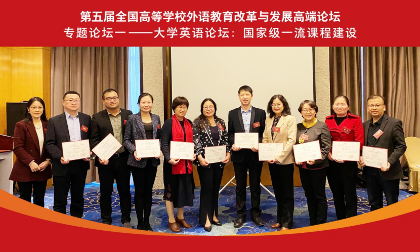 学校国家级线上一流课程《新标准大学英语(综合教程)》和国家级线上线下混合一流课程《综合英语》负责人、科研处副处长马武林也应邀参加并在第一论坛作专题发言。他发言的题目是《大学英语一流课程建设:从线上“金课”到线下“金课”》,从改革背景、课程目标设定、SPTALL混合教学模式、改革成效和反思总结等5个方面分享了我校基于国家级线上一流课程《新标准大学英语》建设的国家级线上线下混合一流课程《综合英语》建设经验。