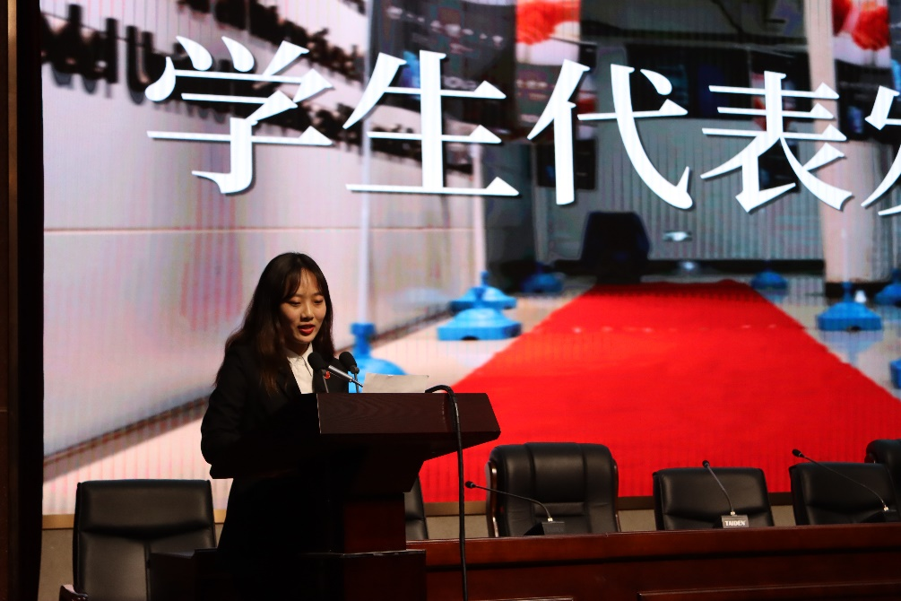 我校纵横学社社长沈俊尹作为学生代表在大赛开幕式上发言