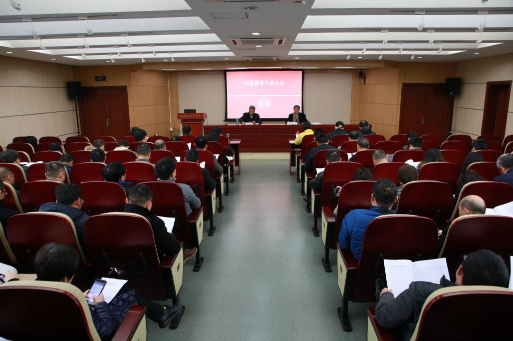 3月1日,我校召开干部大会,部署2019年党政工作任务。全体校领导、中层领导干部出席会议。党委书记明国辉出席会议并讲话,党委副书记、校长李克勇主持会议。