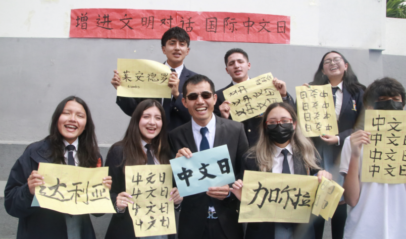 为庆祝第十四个“国际中文日”,扩大“国际中文日”在厄瓜多尔的影响力,思源中国语学校孔子课堂积极响应语合中心与中文联盟的倡议,校长曹孝宏带领17名中文教师走进LICEO MATOVELLE学校,成功举办了“国际中文日”庆祝活动。该校700余名师生共同参加了此次活动。