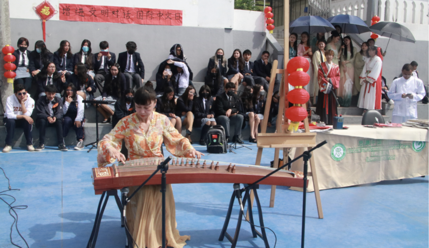 LICEO MATOVELLE高中部学生们演唱了中文歌《听我说谢谢你》。
