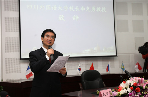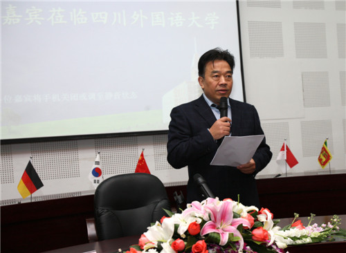 研讨会由四川外国语大学党委书记明国辉主持。会上,四川外国语大学校长李克勇致欢迎辞,对在座的政、学、商界来宾表示热烈欢迎和衷心的感谢。他简要介绍了四川外国语大学的历史、发展现状以及近年来川外在外语、外贸以及涉外人才的培养上取得的成果。他指出,重庆处于海上丝绸之路及长江经济带中,起着承东启西、连接南北的作用,在国家实施“一带一路”发展战略的大背景下,川外在继续发挥传统办学优势和学科优势的同时,还应探索如何融入重庆的经济发展,以一种全新的姿态履行外语院校培养复合人才的使命。